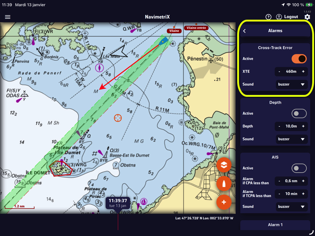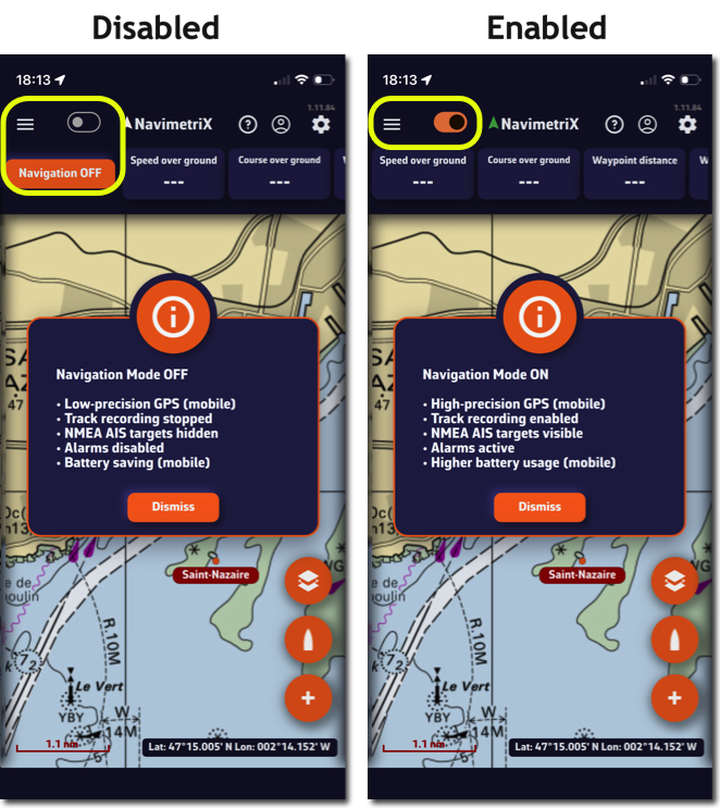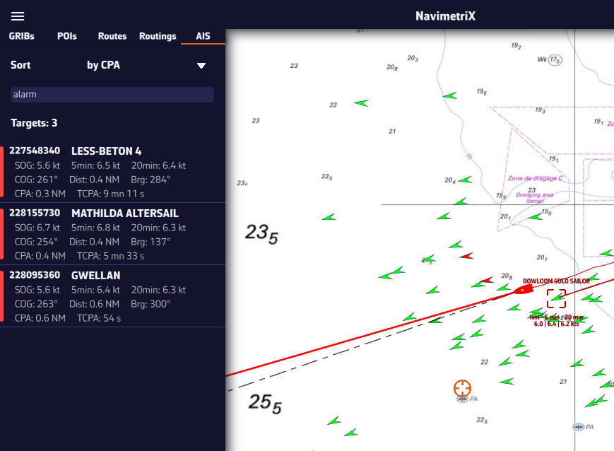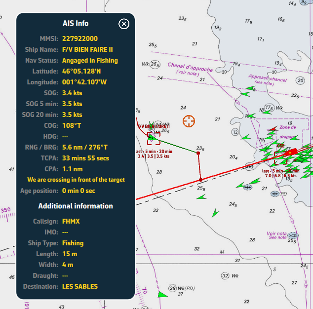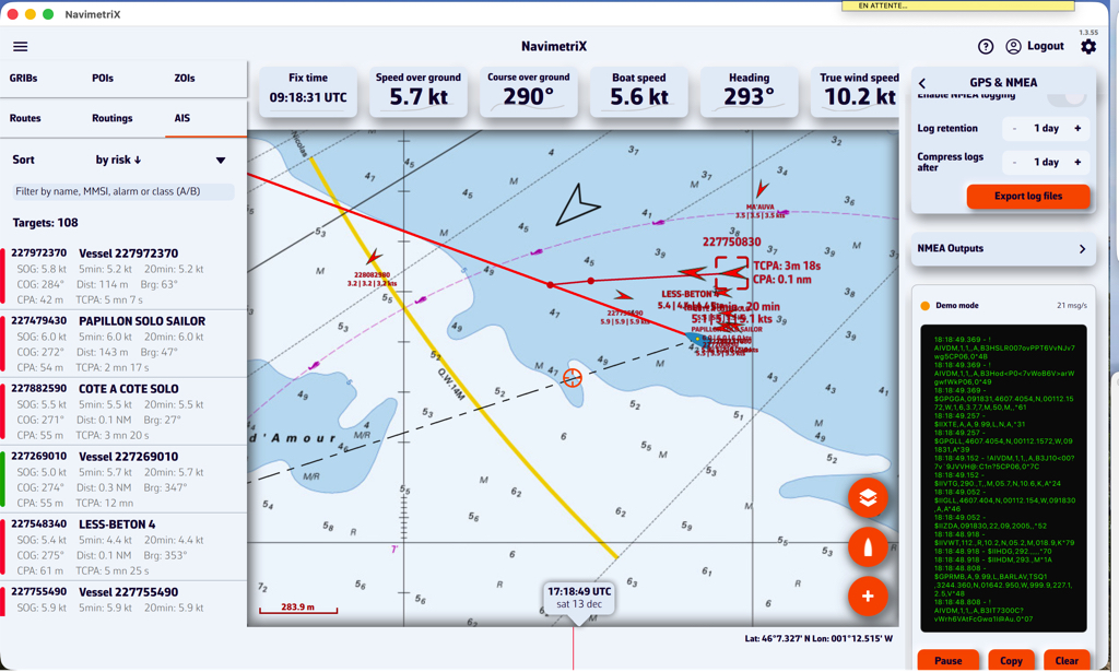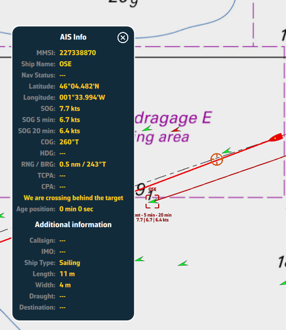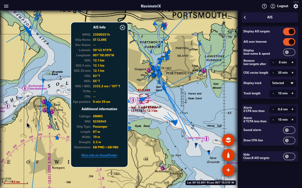 If the AIS signal is lost, NavimetriX automatically switches to drift estimation mode after 60 seconds.