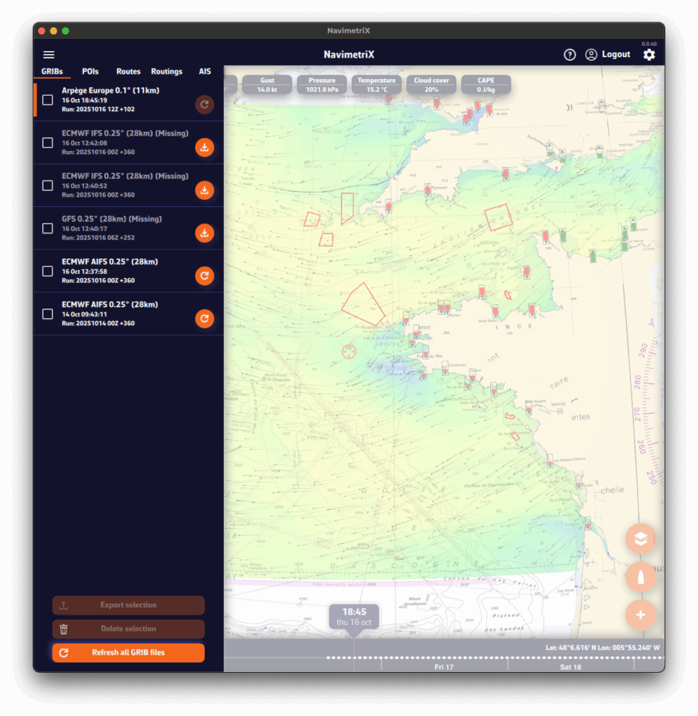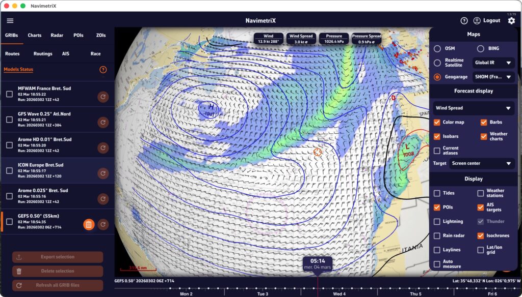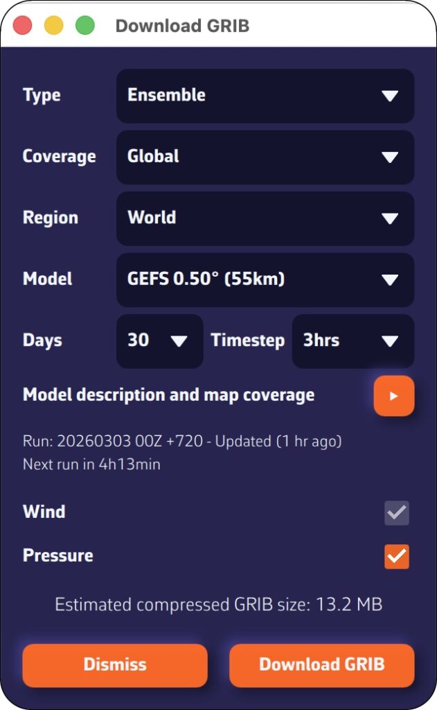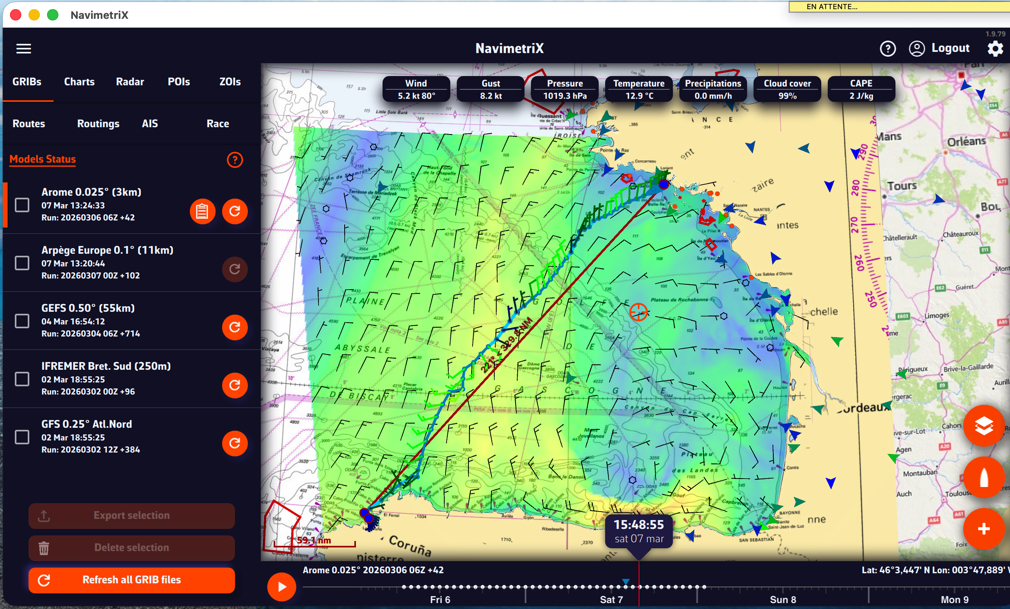 - Load a GRIB file for your sailing area: GRIB wind and current data significantly improve drift calculation accuracy