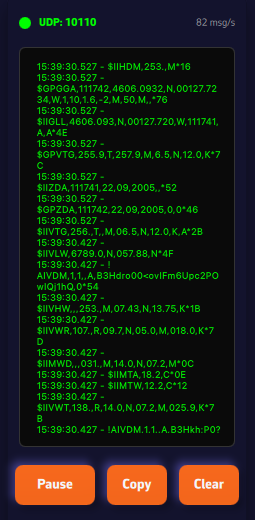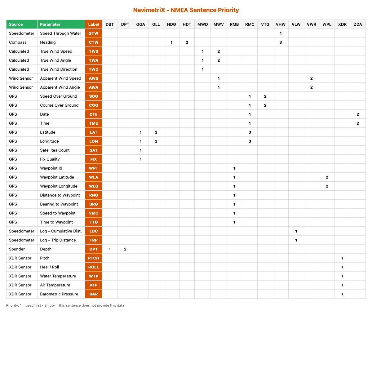 NMEA data streamed by an NMEA gateway, a multiplexer, or any other instrument broadcasting on a serial port via a USB connection is supported.