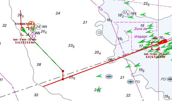 - red polygons, such as TSS (Traffic Separation Schemes) or offshore wind farm areas