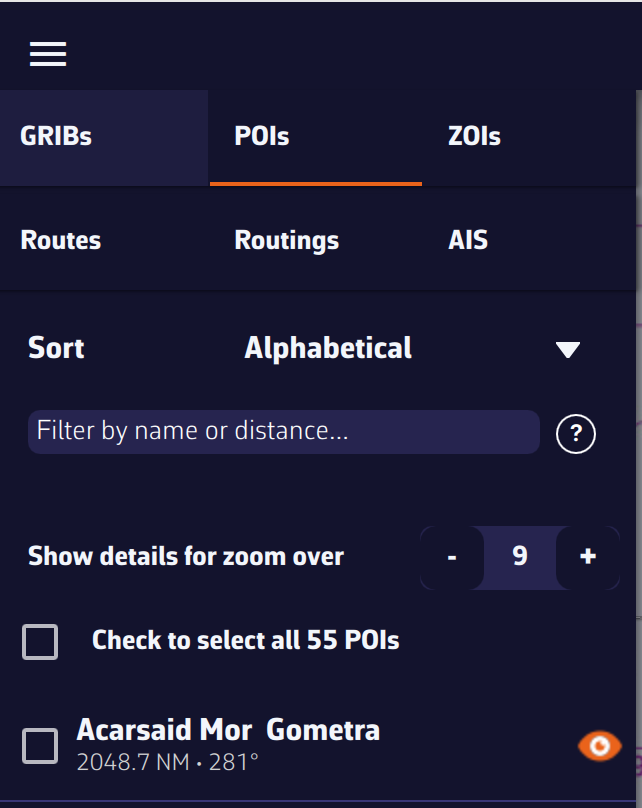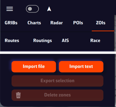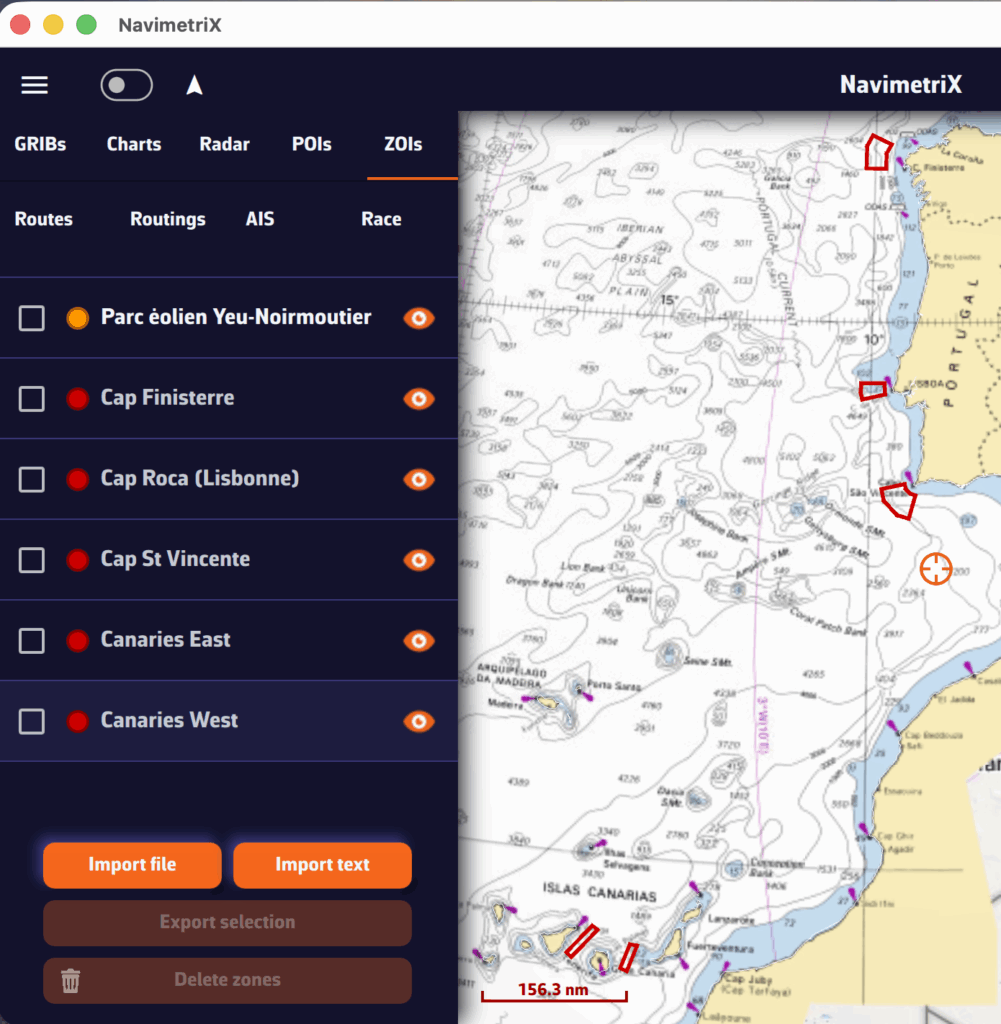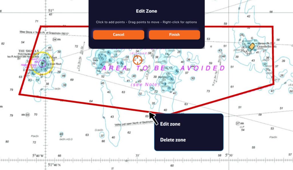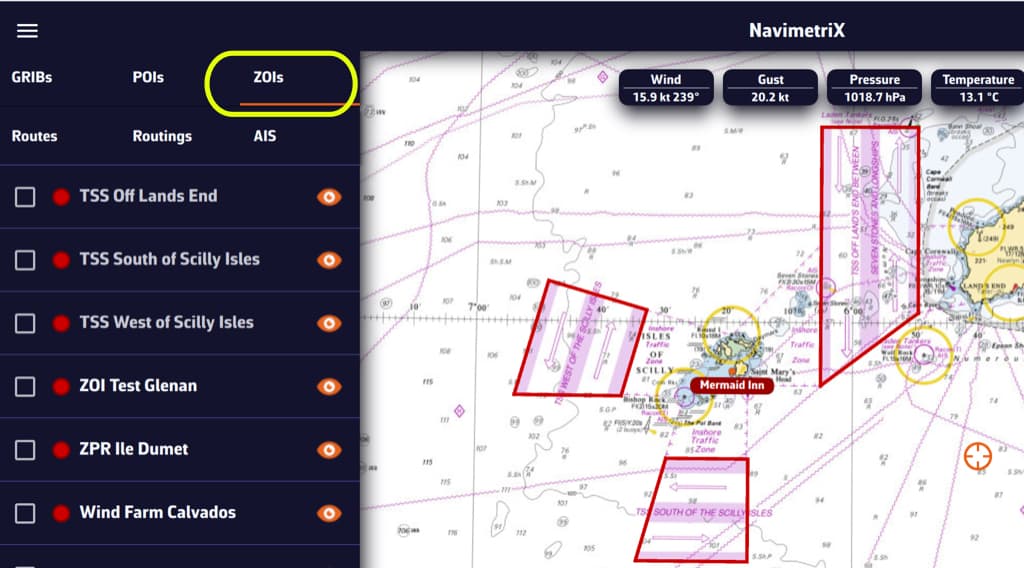 - ZOIs Zones to avoid, i.e. Traffic Separation Schemes