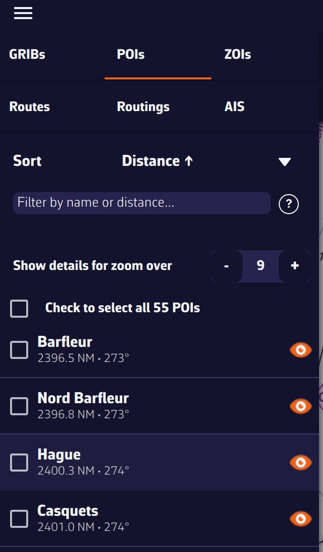 - Zoom and pan the chart to the race area (boats may be far from your current view)