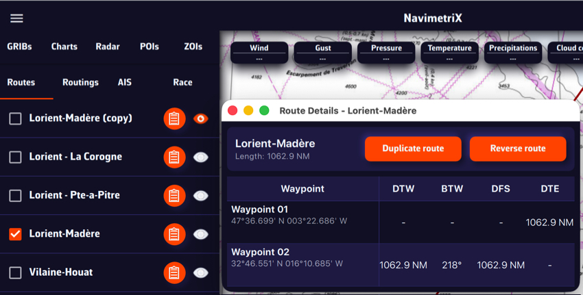 Race Tracking allows you to follow offshore sailing races in real-time directly on the NavimetriX chart. You can import race definitions, download position reports automatically or manually, and view rankings based on distance to finish.